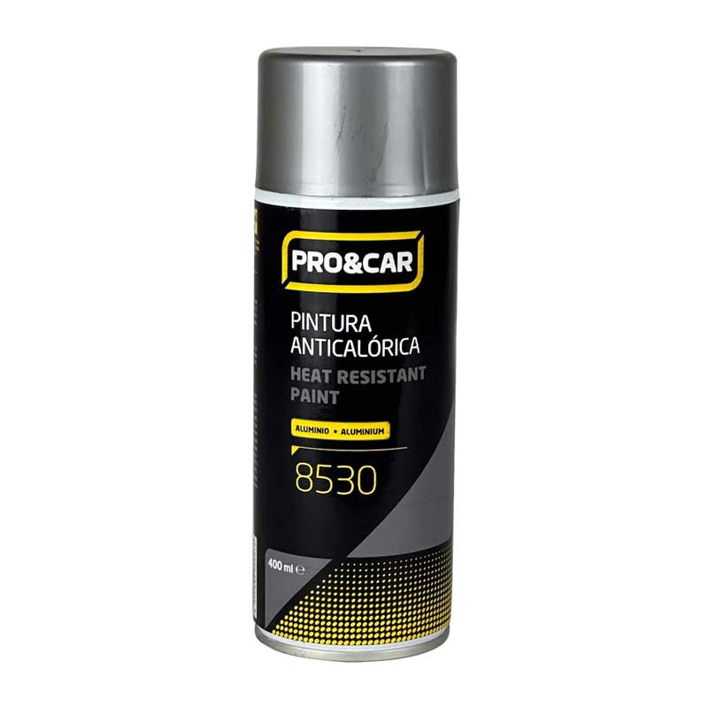 El Spray Anticalórico Aluminio (400 ml) de PRO&CAR está formulado para proporcionar una capa protectora y decorativa en superficies expuestas a temperaturas extremas. Su resistencia térmica de hasta 650°C lo hace ideal para escapes, colectores y otras piezas sometidas a calor constante. Además, su acabado metálico en color aluminio ofrece un toque profesional, combinado con una excelente adherencia y durabilidad.
