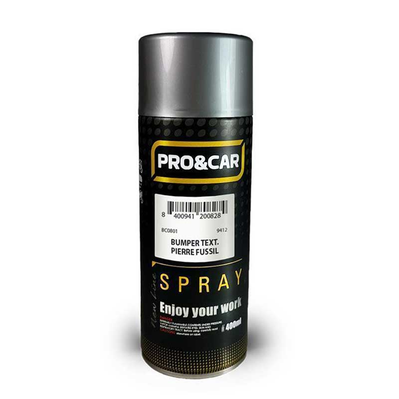 El Spray Bumper Texturizado Pierre Fusil (400 ml) de PRO&CAR combina funcionalidad y estilo, permitiendo restaurar y personalizar parachoques y piezas plásticas con un acabado texturizado uniforme en un sofisticado tono pierre fusil. Diseñado para cumplir con las exigencias de talleres profesionales y aficionados, este spray garantiza alta adherencia y resistencia al desgaste, brindando resultados duraderos y de calidad superior.