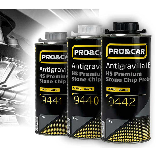 Las latas de Antigravilla PRO&CAR están formuladas para ofrecer una protección elástica, resistente y de larga duración en las zonas más expuestas de la carrocería: bajos, pasos de rueda, estribos y chasis. Su composición flexible crea un recubrimiento protector frente a impactos, humedad, gravilla y productos químicos, manteniendo su elasticidad sin agrietarse con el tiempo.